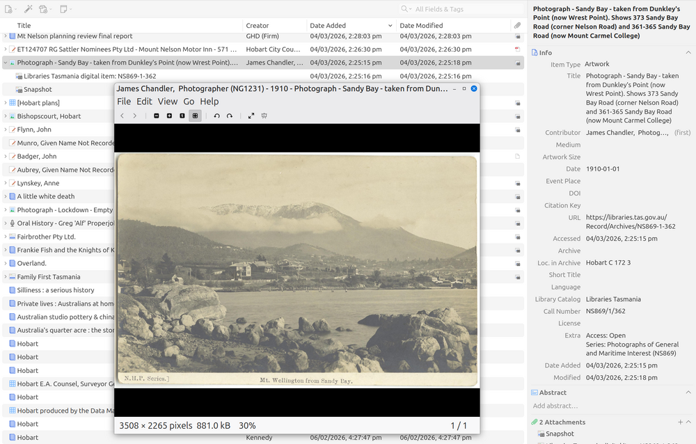 The Zotero translator for Libraries Tasmania has been updated, fixing a problem with attaching images of digitised resources. The fix is in the main Zotero repository now, so it should find its way to your computer automatically.